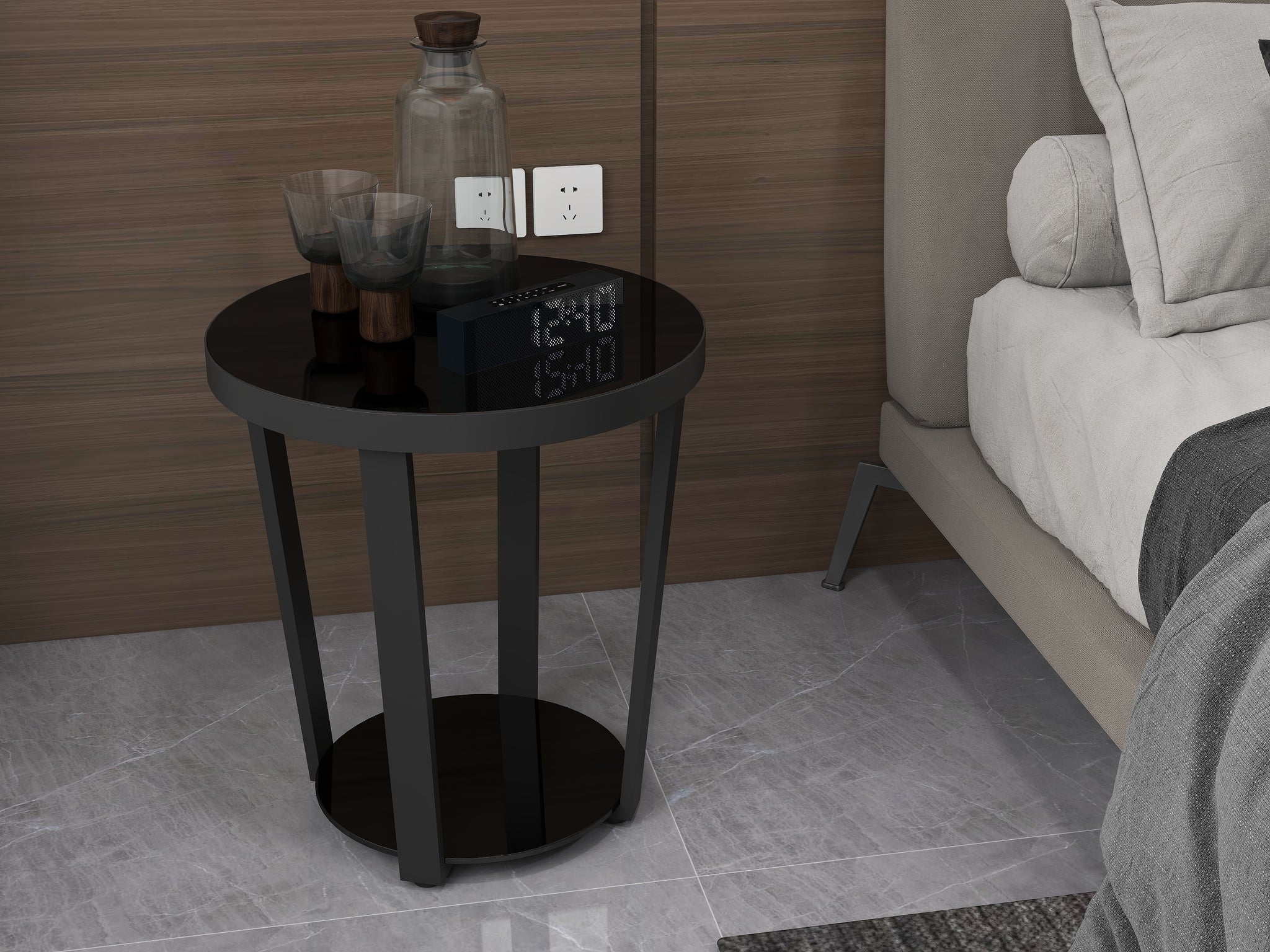 • Glass end table is designed in a clean, contemporary, and minimalist style. Tabletop is made of 6mm thick tempered frosted glass. The steel powder coated frame is rugged enough to withstand the load capacity while ensuring excellent stability. This end table easily matches rooms of all types of styles and will add a stylish appearance to your setting. Perfect for bedroom as a bedside table, in the hallway to store keys or on the balcony to hold plants; this multi-purpose furniture is ideal for wherever you want it. Easy installation, no additional tools required. 2 Years Manufacturer's Warranty
